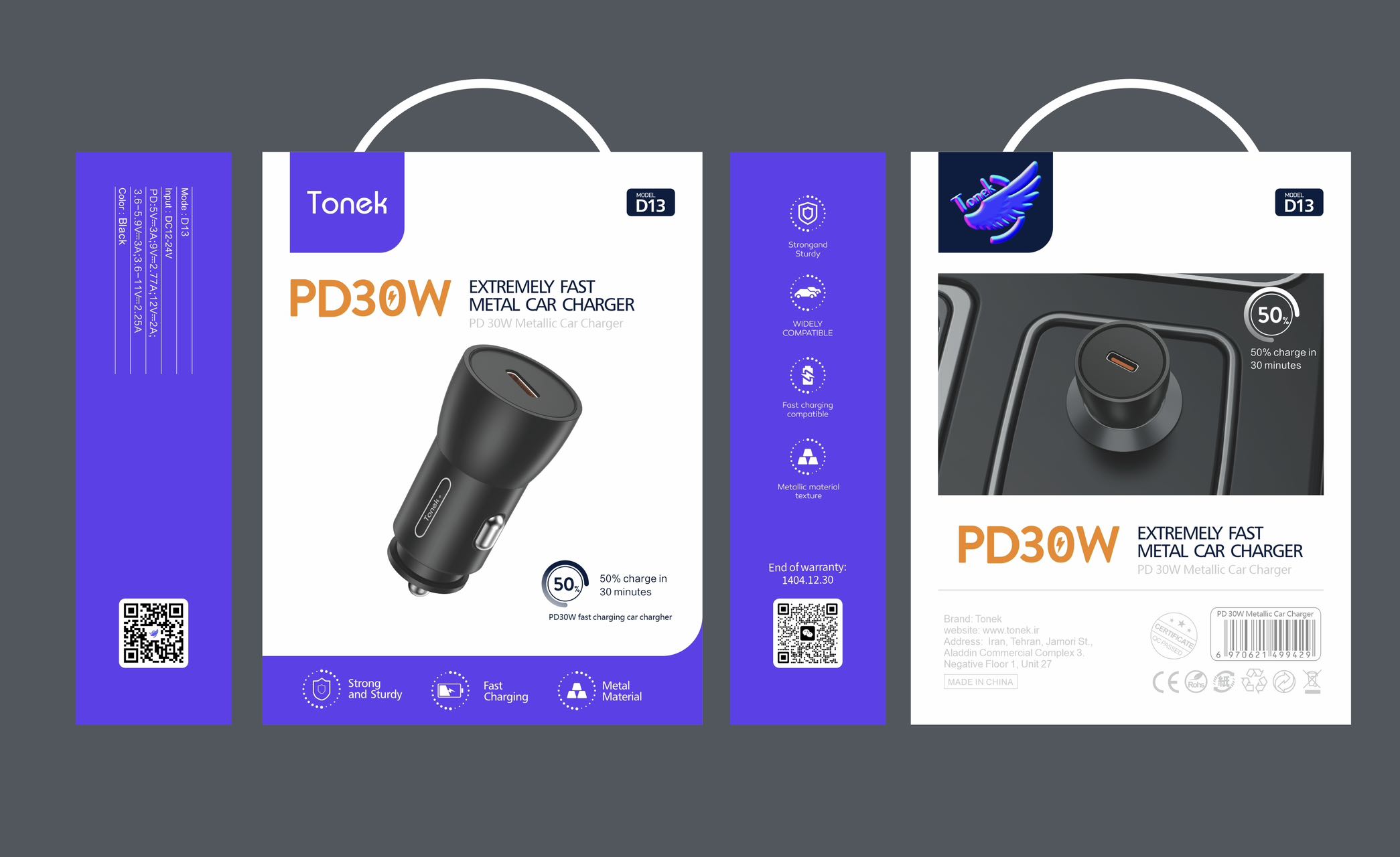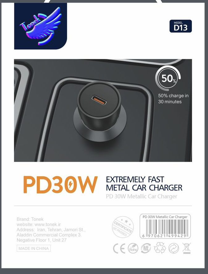 شارژر فندکی تونک مدل D13 با قابلیت فست شارژ دارای یک خروجی USB می باشد که قابلیت شارژ کردن انواع گوشی تلفن همراه که دارای تکنولوژی شارژ سریع را می باشند را دارد . جنس بدنه فلزی و کیفیت ساخت بالایی برخوردار می باشد