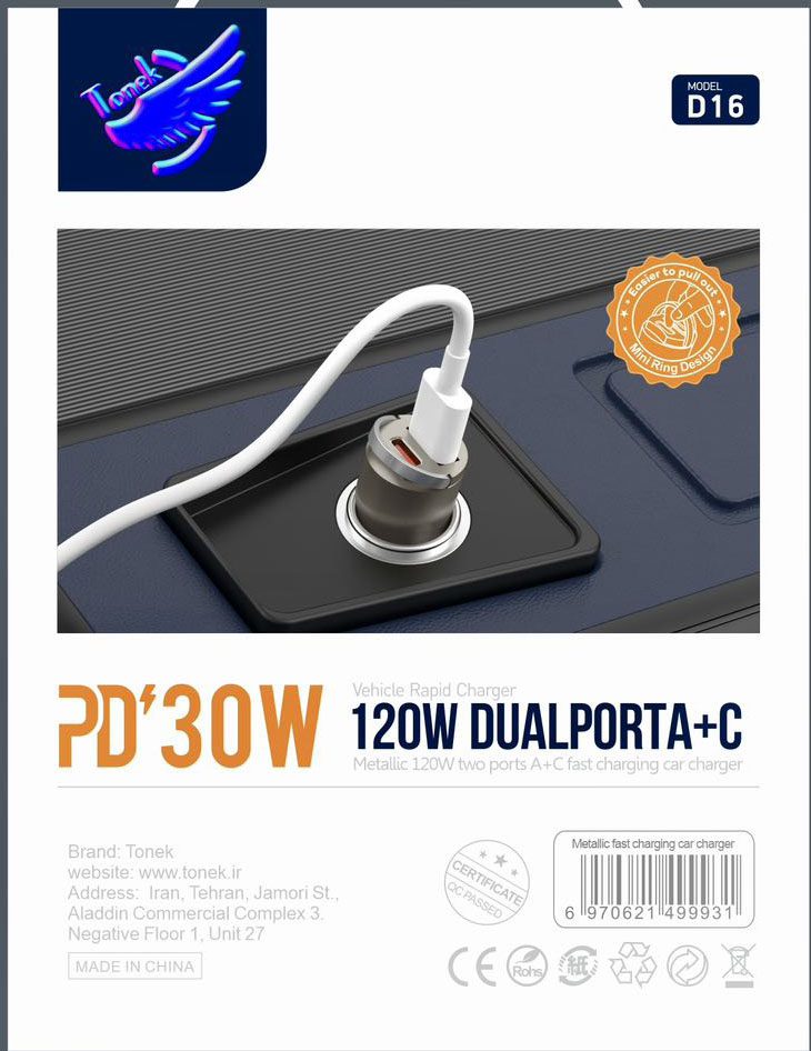 شارژر فندکی تونک مدل D16 فست شارژ 2 پورت