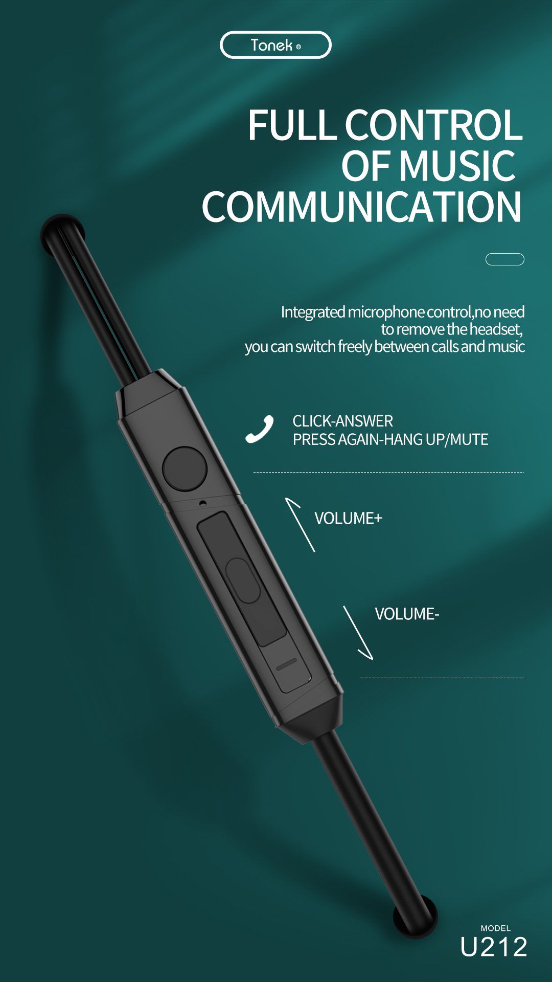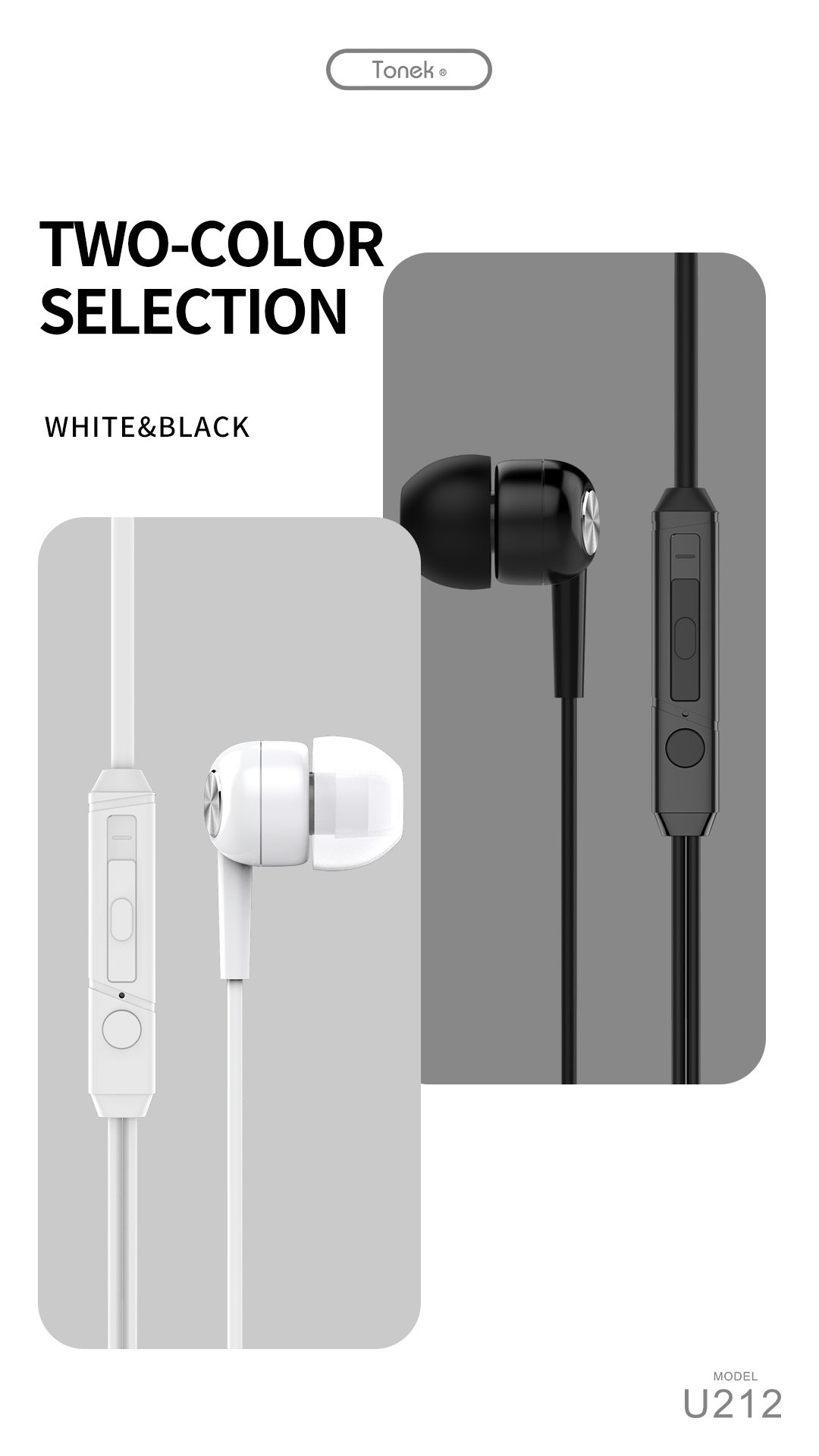 هندزفری سیم دار برند تونک مدل U212 با طراحی شیک با قابلیت مکالمه، پخش موزیک، و مناسب برای کلاس های آنلاین است. جنس این محصول از TPE مخفف الاستومر ترموپلاستیک است. این ترکیبی از پلاستیک سخت و لاستیک نرم است، بنابراین دارای خواص ترموپلاستیک و الاستیک استو میتواند در برابر بسیاری از صدمات روزمره مقاومت خوبی از خود نشان دهد. اسپیکرهای این هندزفری توسط سرگوشیهای نرم و راحت پوشانده شده است به گونه ای که شما هنگام استفاده طولانی مدت از آنها خیلی دچار خستگی نمیشوید.باطول سیم طول سیم 1.2 متر به استفاده راحت تر شما کمک میکند.در دو رنگ سفید و مشکی می باشد و با 98% مدل های گوشی سازگار است.از ویژگی استریو HIFI پشتیبانی میکند