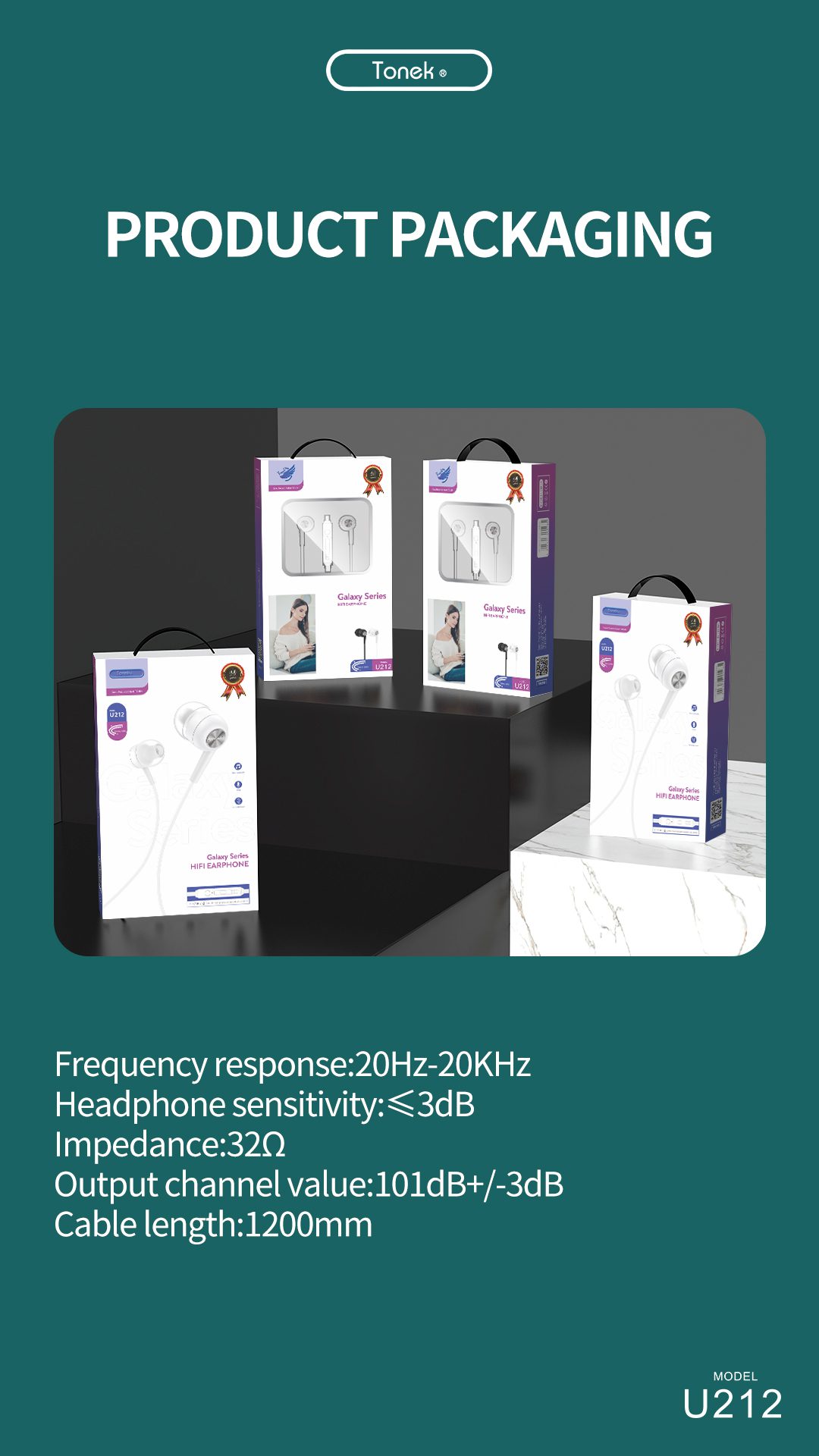هندزفری سیمی تونک مدل U212 استریو HIFI سریGalaxy