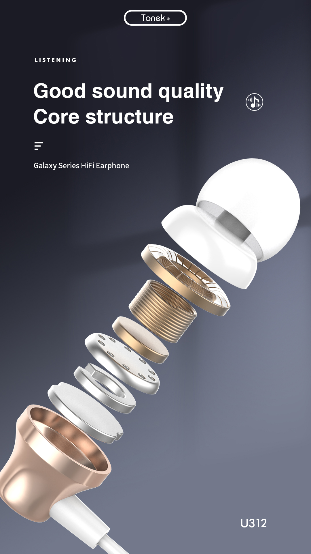 هندزفری سیمی تونک مدل U312 استریو HIFI سریGalaxy