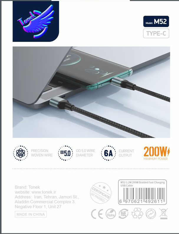 کابل شارژ Type-C تونک مدل M52 فست شارژ